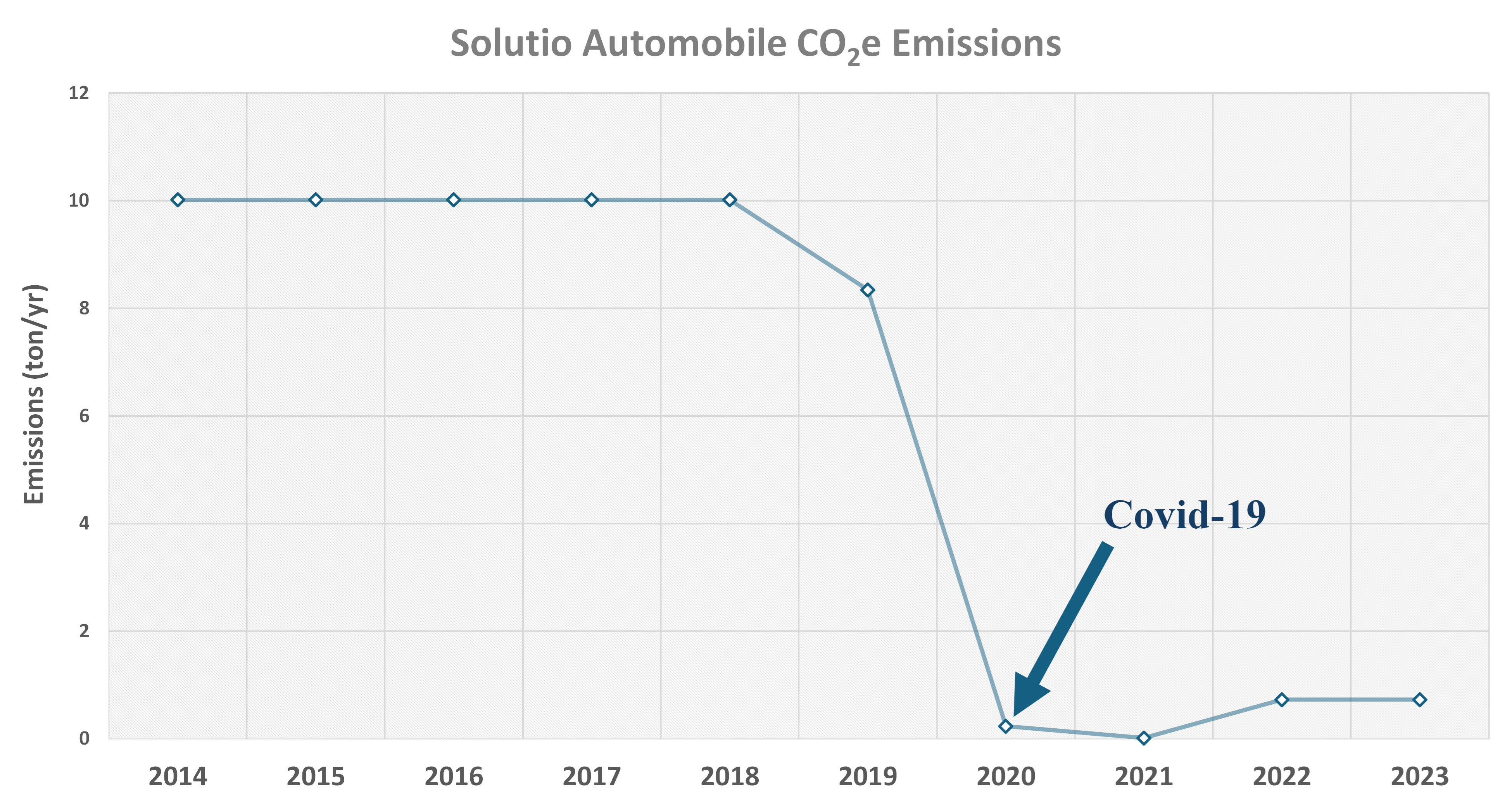 Prior to the Covid-19 pandemic, Solutio routinely (near daily) provided direct face-to-face consultations with our local customers, which resulted in local automotive travel. With the arrival of Covid-19, these direct consultations halted and were replaced with teleconferencing and secured file transfers. The success of this approach demonstrated that services could be effectively provided without direct face-to-face consultations, which consequently reduced our GHG emissions. By continuing this approach beyond the pandemic, GHG emissions associated with our local automobile travel were reduced by 93% (from 10 ton/yr to 0.7 ton/yr).